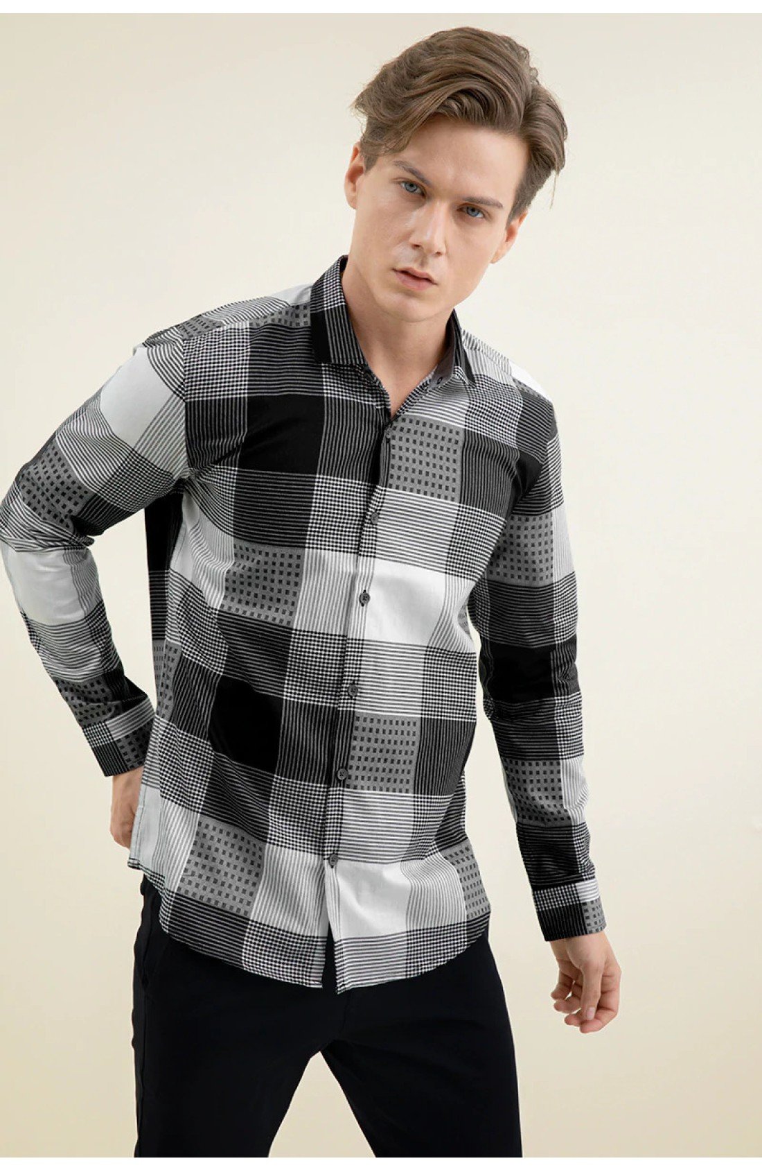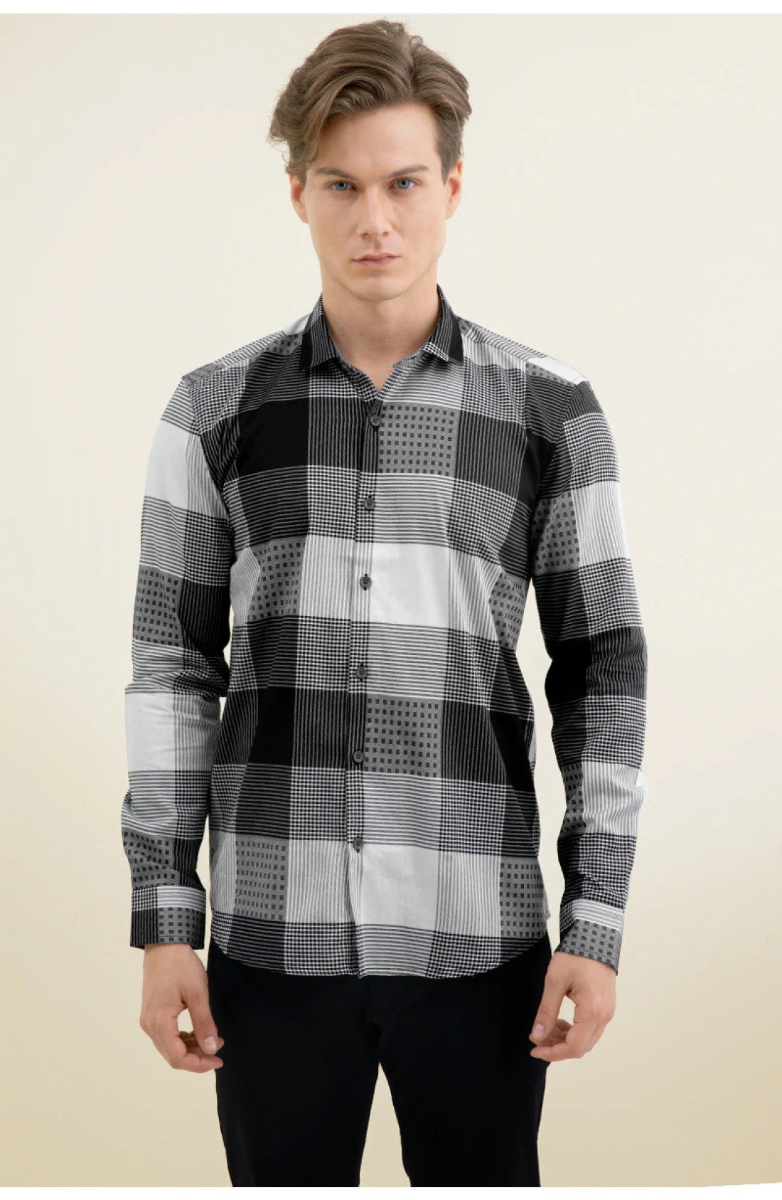 Men Black & Grey Checked Pure Cotton Casual Shirt